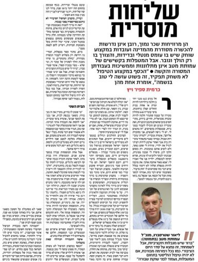 הכתבה "שליחות מוסרית" שפורסמה ב- 21.11.2016 בעיתון מעריב, עוסקת במטפלות הסיעודיות של עמותת מטב ובמקצוע הטיפול הסיעודי בישראל.