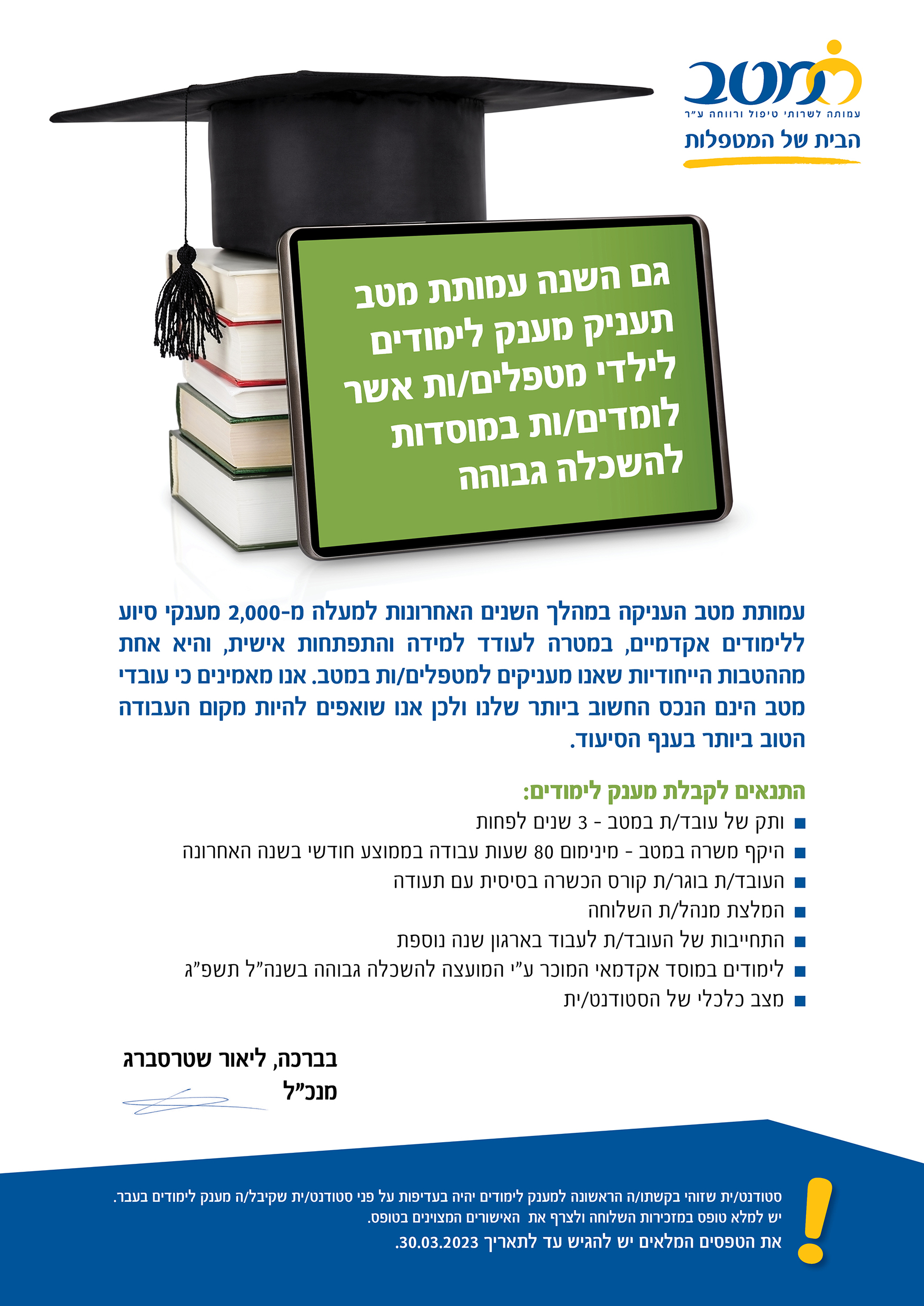 מענק לימודים לילדי מטפלות עברית 2023
